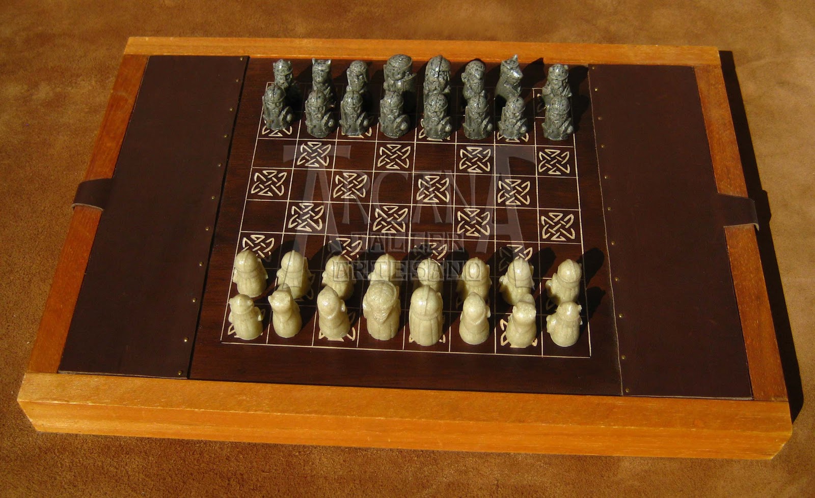 Ajedrez de diseño propio con figuras celtas en diversos formatos: