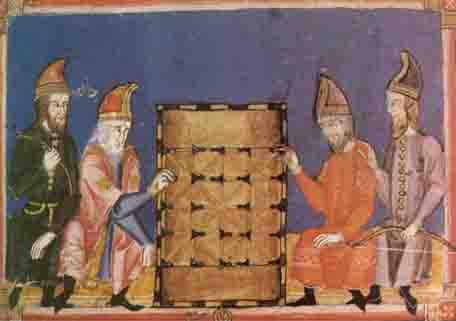 La primera mención del juego en la literatura es de finales del siglo X, cuando Abu’l-Faraj al-Isfahani habla en su obra “Kitab al-Aghani” (El libro de las canciones). Las reglas más antiguas conocidas son las que aparecen en el siglo XIII en la obra “Libro de axedrez, dados e tablas” de Alfonso X, “el sabio”, de Castilla.